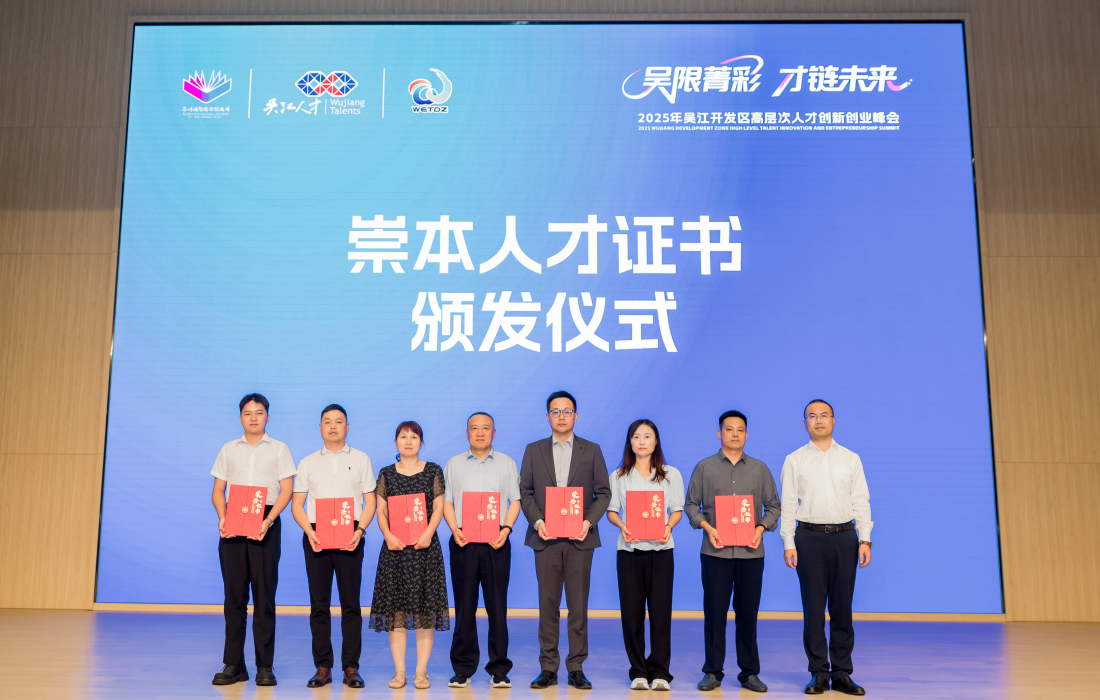 DevelopmentAt the "Boundless Brilliance, Linking Talent to the Future — 2025 Wujiang Development Zone High-level Talent Innovation and Entrepreneurship Summit", relevant talents of our company happily obtained the "Chongben Talent Certificate", which is a great honor and encouragement for the company.All along, the company has attached great importance to talent cultivation and introduction, regarding talents as the core driving force for enterprise development. The fact that our company's talents have won this certificate fully demonstrates the recognition of Wujiang Development Zone for our company's talent construction work, and also reflects the remarkable achievements of the Development Zone in talent cultivation and support.Wujiang Development Zone has created a high-quality development environment for enterprises and talents. From policy guidance to resource allocation, it provides strong support for talents to display their talents and for enterprises to achieve innovative development. In such an environment, talents of our company can continue to grow, shine in their respective positions, and contribute to the company's technological innovation, business expansion and other aspects.In the future, taking this honor as an opportunity, the company will further strengthen the construction of the talent team, give full play to the advantages of talents, continuously increase investment in innovation, actively respond to the call of the Development Zone "Linking Talent to the Future", resonate with the Development Zone, contribute to the high-quality development of the regional economy, and also lay a solid talent foundation for the company to achieve greater development goals.